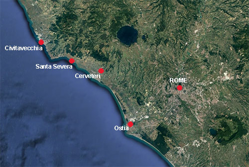 In July 2016 I met Luca Seidenari, one the most active co-workers of our magazine at the Terme Taurine in Civitavecchia (see article ‘Looking for Centumcellae). While talking to him one of his friends was entering the room and he was introduced as a worker at another important Roman Port in the neighbourhood, called Santa Severa. This year I decided to visit that location.