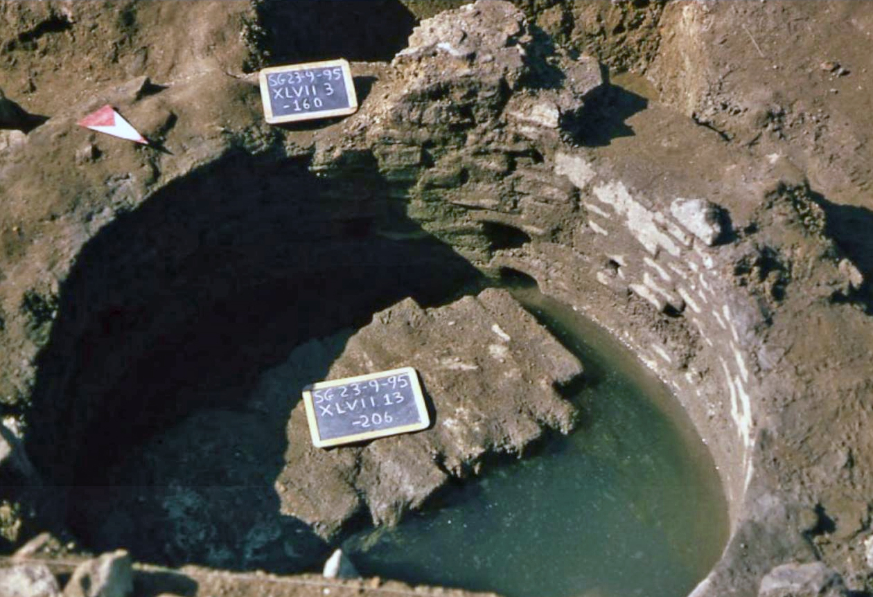 Connected to the bath house, east of the rooms 10 and 12 is a well with fresh water not only for the workers in the bath house but probably also for labor from other workshops east of the bath house.