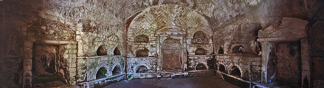 The tomb is a columbarium. On the back wall are no traces of paintings.