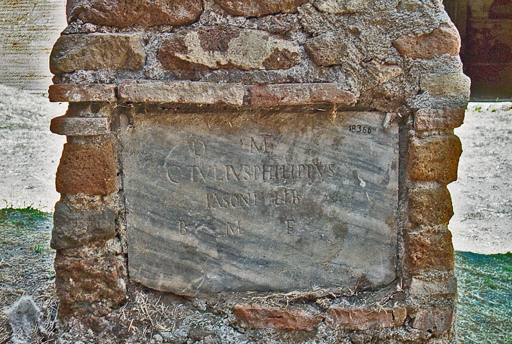 The tomb has been built by Caius Iulius Philippus for Iason, his freedman who has served him well. Iason is presumably the same man who built tomb 74 for his son.