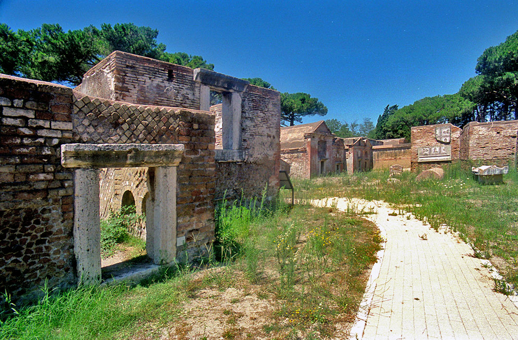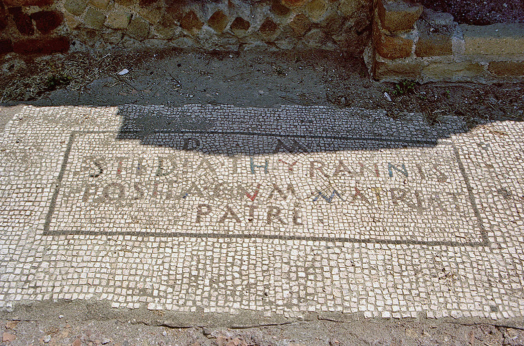 - 1: Escavations in the 70ths have brought to light a threshold covered with black and white mosaic. Thus, the polychromic mosaic dates from a later period or doesn’t belong to this tomb at all. - I. Baldassarre, I. Bragantini, Ch. Morselli en F. Taglietti: Necropoli di Porto (1996)