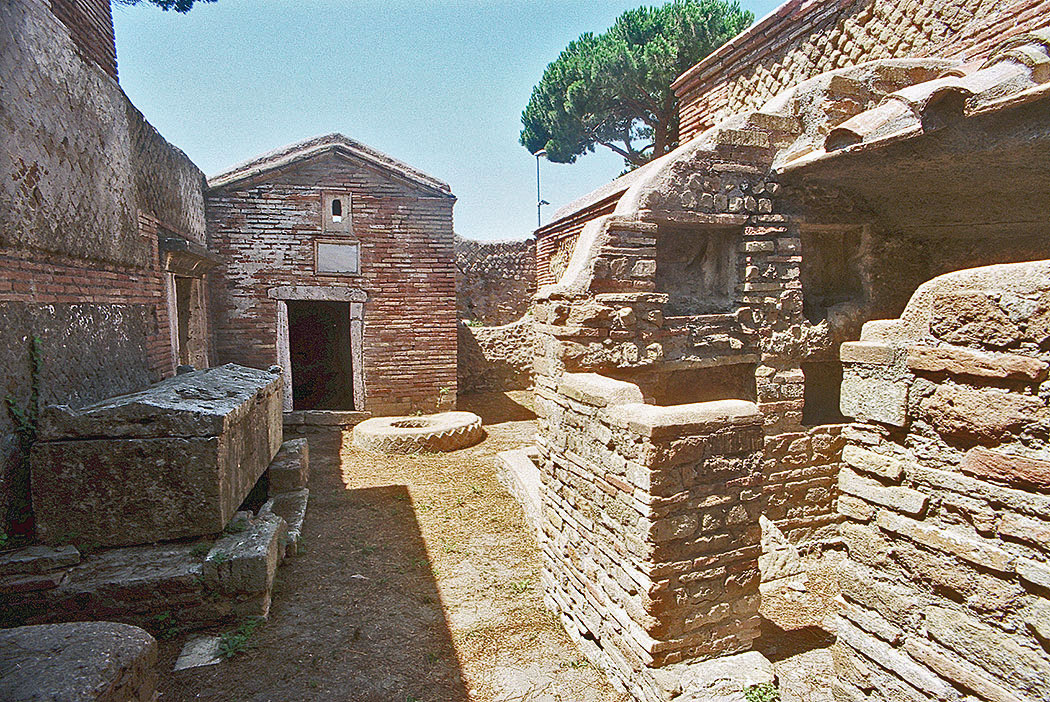 The space inside the enclosure contains many other graves, tombs "a cappuccina" and with amphorae. Some of them are still visible. In a large bench of red brick (89D) against the right wall of tomb 88 and the left wall of burial chamber 89B, a number of bodies were buried. A second bench (89E) with bodies was found against the wall of tomb 88, near the oven. Finally there was a small tomb "a cassone" parallel with the façade, facing burial chamber 89C.