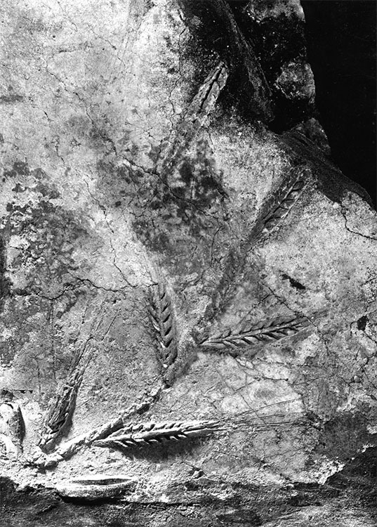 On the vault and on the walls, between the arcosolia, reliefs of ears of