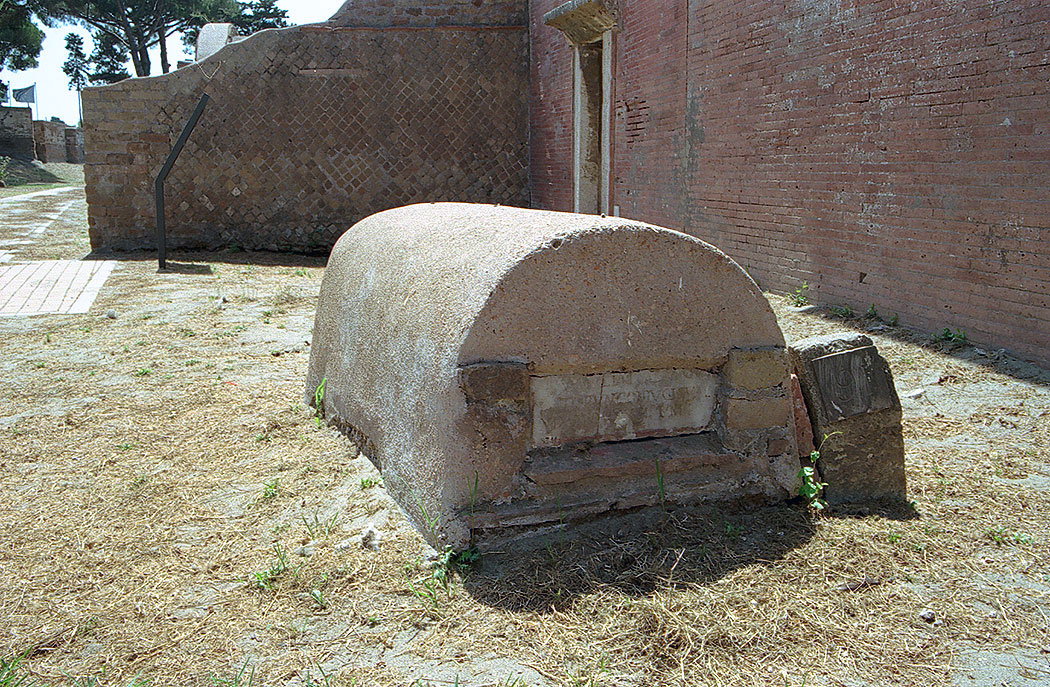 map tombe 90East of tomb 90 lies the semicircular tomb "a cassone" 91. The grave runs parallel with the Via Severiana and has the following inscription on the short, northern side (in the direction of Portus):