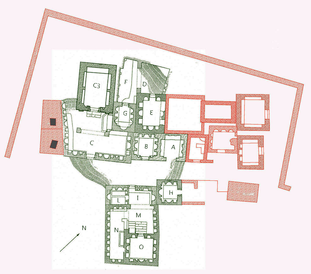 When I was working on the description of the great cemetery, I asked various archaeologists what they could tell me about this small cluster of tombs. The big silence started. It seemed like these graves had come forth from the ground yesterday and nobody had taken notice. After a lot of searching I got a photocopy with the description of a part of these tombs. These tombs, the green ones, are numbered on the map below. The other structures (in red) are reconstructed by myself from my own observation and by Google maps (for the size).